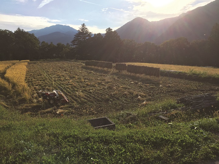 ここ長谷地区は南アルプスから流れ出る三峰(みぶ)川に沿って南北に伸びた狭い谷で、圃場も斜面に張り付いたような小さなものが多いです。一枚あたりこれほど広い圃場を借りたことが今までなかったために、人力に頼る私のやり方でどこまで通用するか不安もありましたが、従来のやり方でチャレンジしてみました。