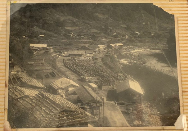 勝子さんが大切に保管していた、当時の様子をとらえた貴重な写真。河川沿いに線路が敷かれ、中央には木材が山積みになっている