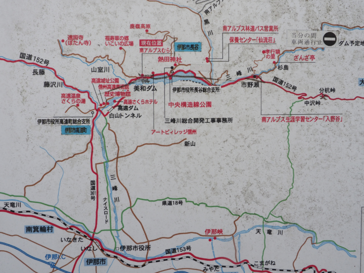 国道152号線から長野県道212号線に入り、三峰川に沿ってさらに奥に進む