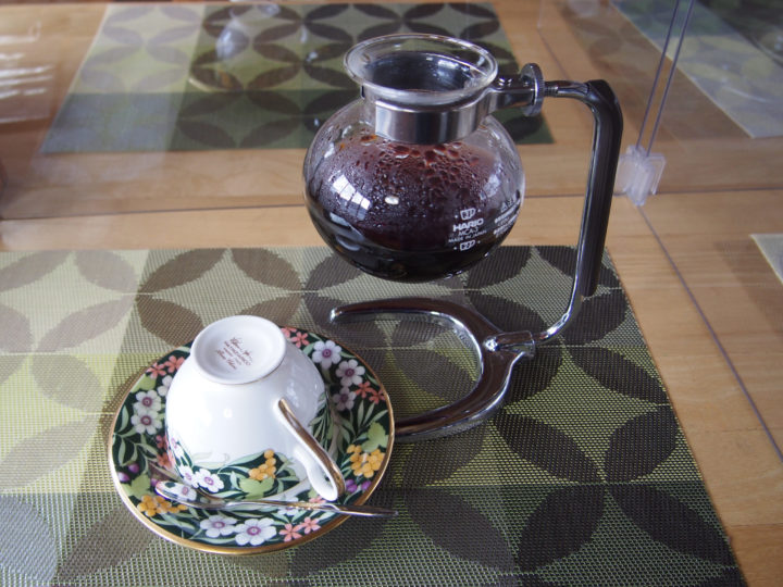 木楽茶屋のコーヒーは、ドリップ式(税込400円)とサイフォン式(同500円)から選べる