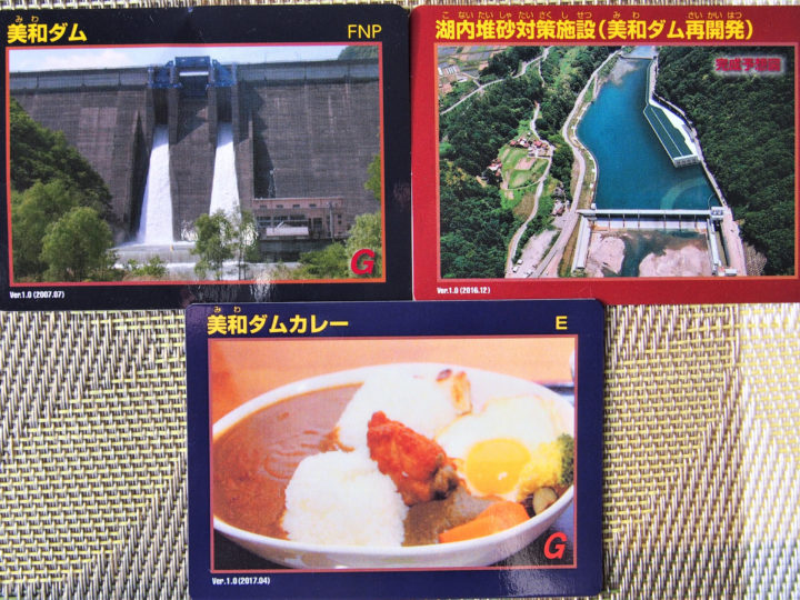 マニア垂涎のダムカードとダムカレーカード。「美和ダムカレー」版は、もちろん木楽茶屋でも買えます(税込200円/1枚)