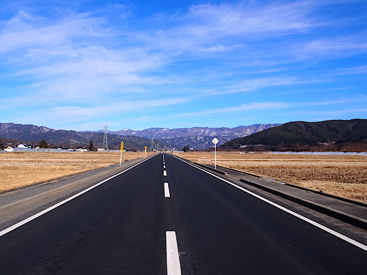 伊那市街から長谷へのドライブは楽しい。三峰川のほとりや左右に広がる広大な田畑の中を真っすぐに走るナイスロード。遠く大パノラマの入笠山から鹿嶺高原に連なる山々を眺めながら三峰川橋を渡ると、それに続く県道209号・沢渡高遠線も三峰川を逸れるまでは右に田畑、左に川を見ながらの快適なドライブルートだ。